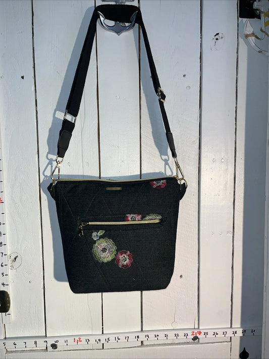 Lidia’s Bags, Handmade With Embroidered Black Denim Fabric Handbag,