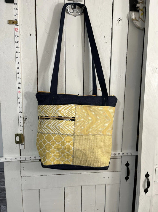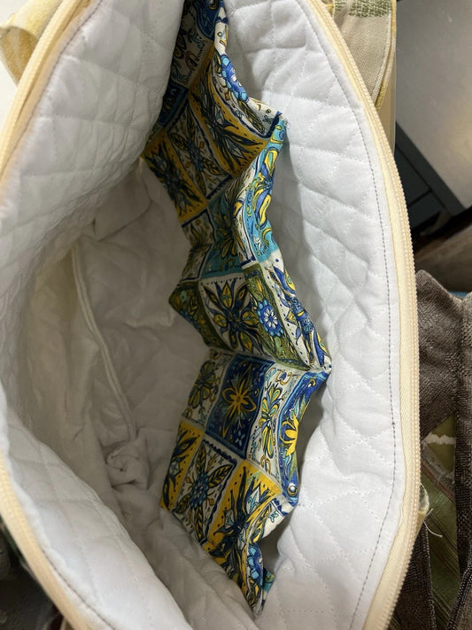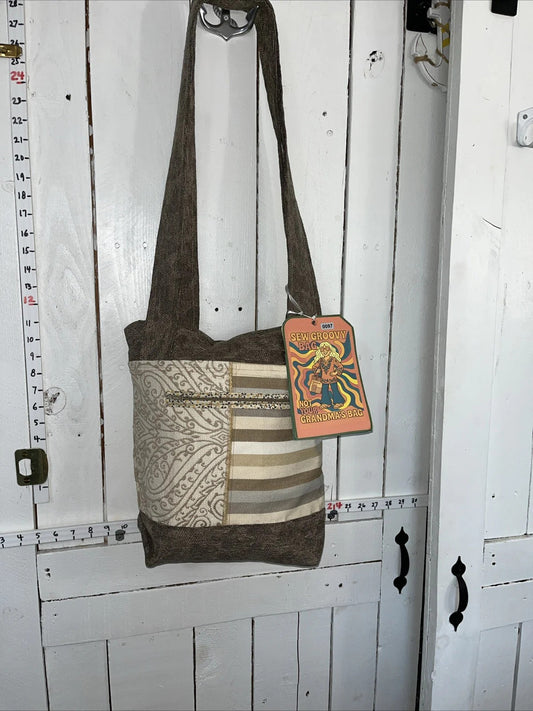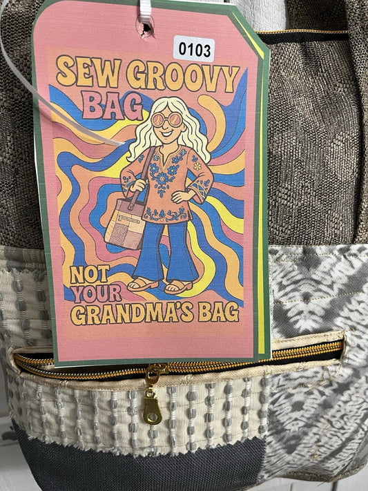 Sew Groovy Bag: Hand sewn patchwork Kraft bag, Many Pockets
