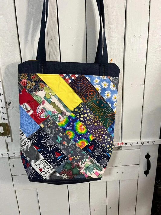 Sew Groovy Bag: Hand sewn patchwork bag, high quality rescued new fabrics.