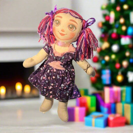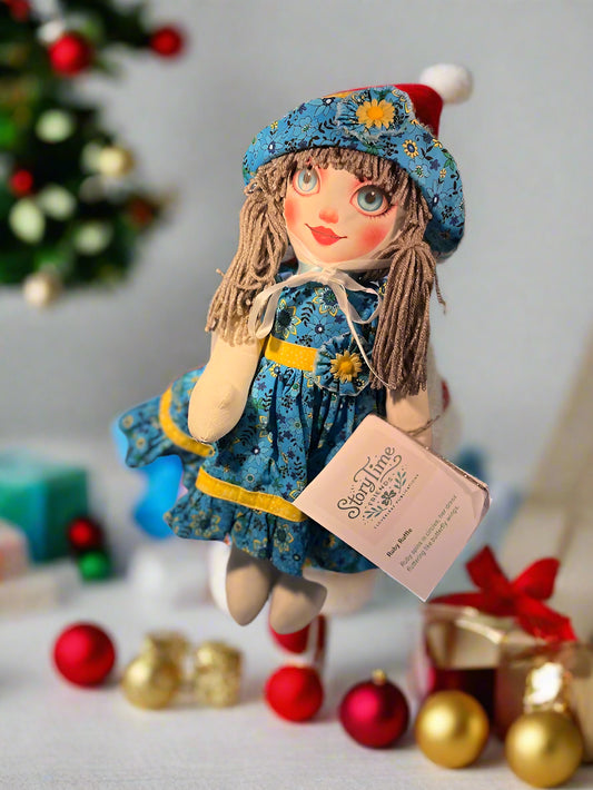 Ruby Ruffle Handmade Rag Doll – 18" Collector Cloth Doll with Story Card – Wool Hair, Custom Face, Vintage-Style Dress – Lidia’s Dolls Storytime Friends