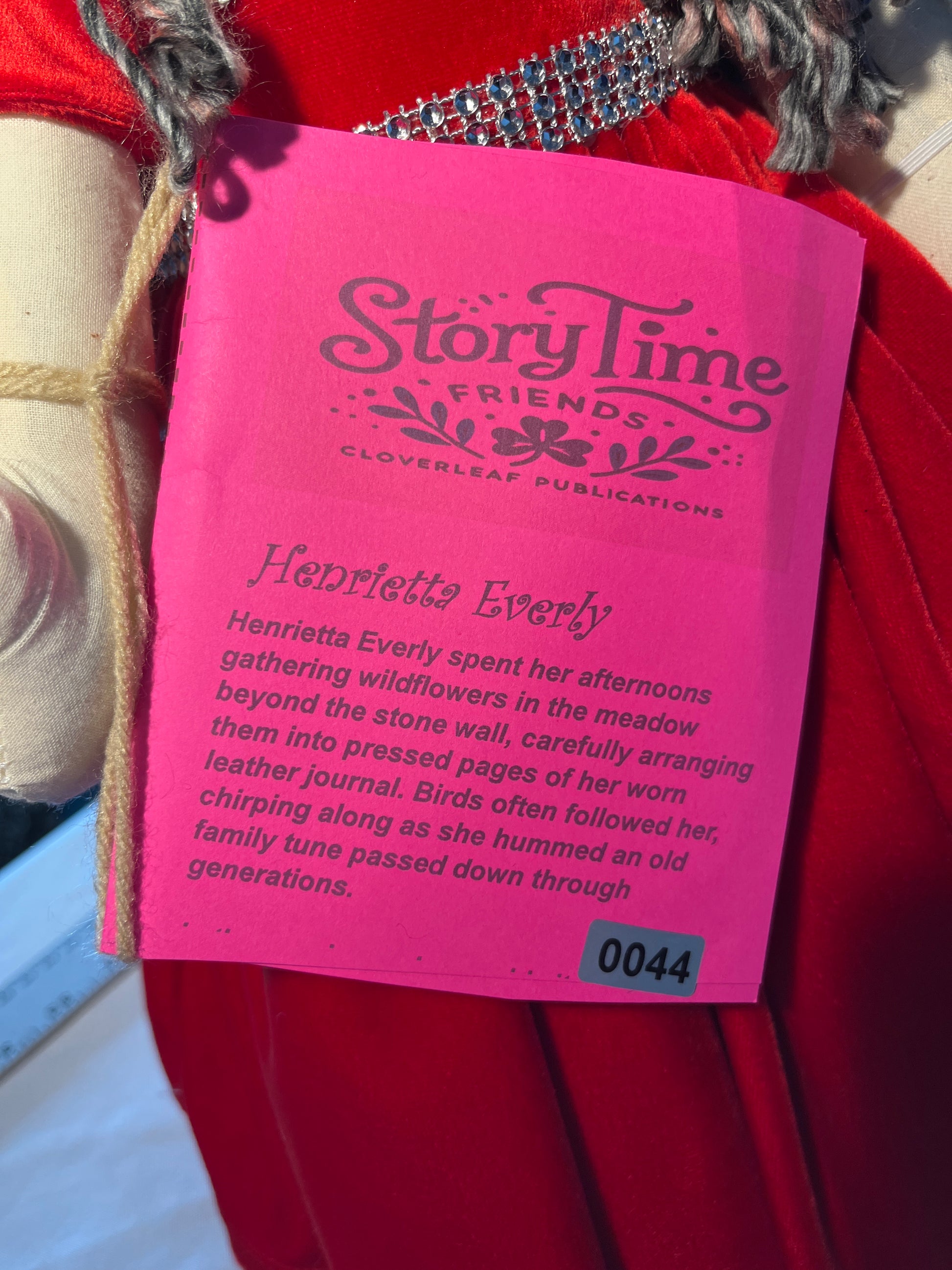 Step into a storybook world with Henrietta Everly, a graceful cloth doll from the Storytime Friends™ series. With her thoughtful eyes, deep auburn wool hair, and flowing red velvet gown trimmed in sparkling silver, Henrietta brings elegance, imagination, and a touch of old-world charm to any home.