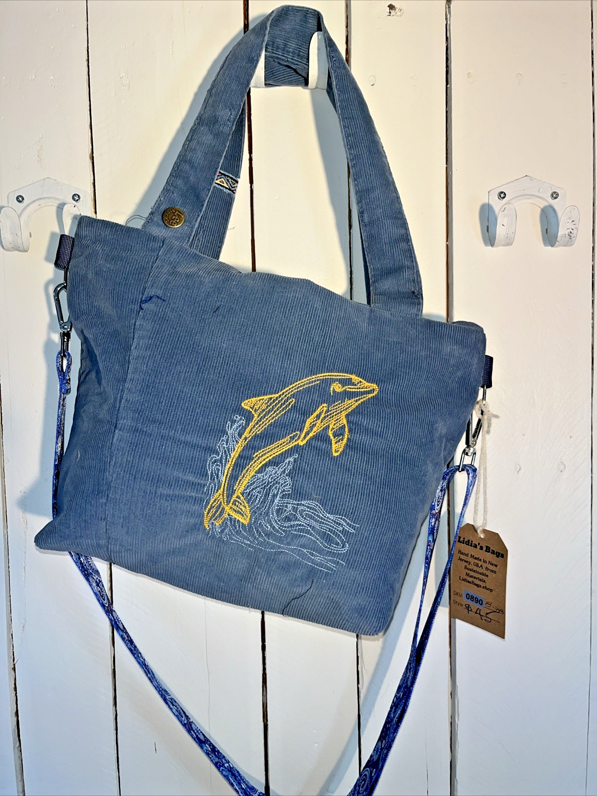Upcycled Corduroy Dolphin Bag — Made for Ocean Lovers