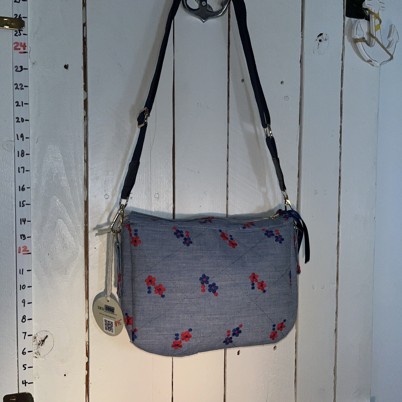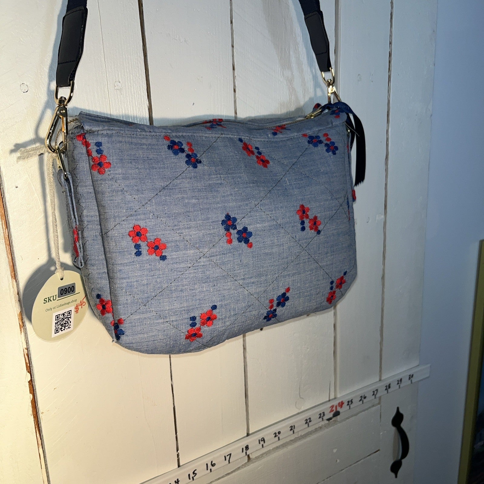 Lidia’s Handmade Embroidered Quilted Bag is a medium-sized crossbody bag with a floral pattern and black exterior. The bag features a zip closure, crossbody strap handle style, and inner pockets. Made with cotton exterior and metallic finish, this eco-friendly bag is handmade in the United States by Lidia’s bags. Perfect for women who appreciate unique and stylish accessories, this bag combines practicality with a touch of hearts-themed design.