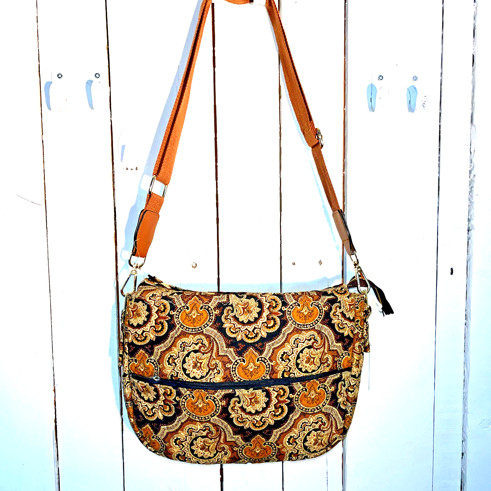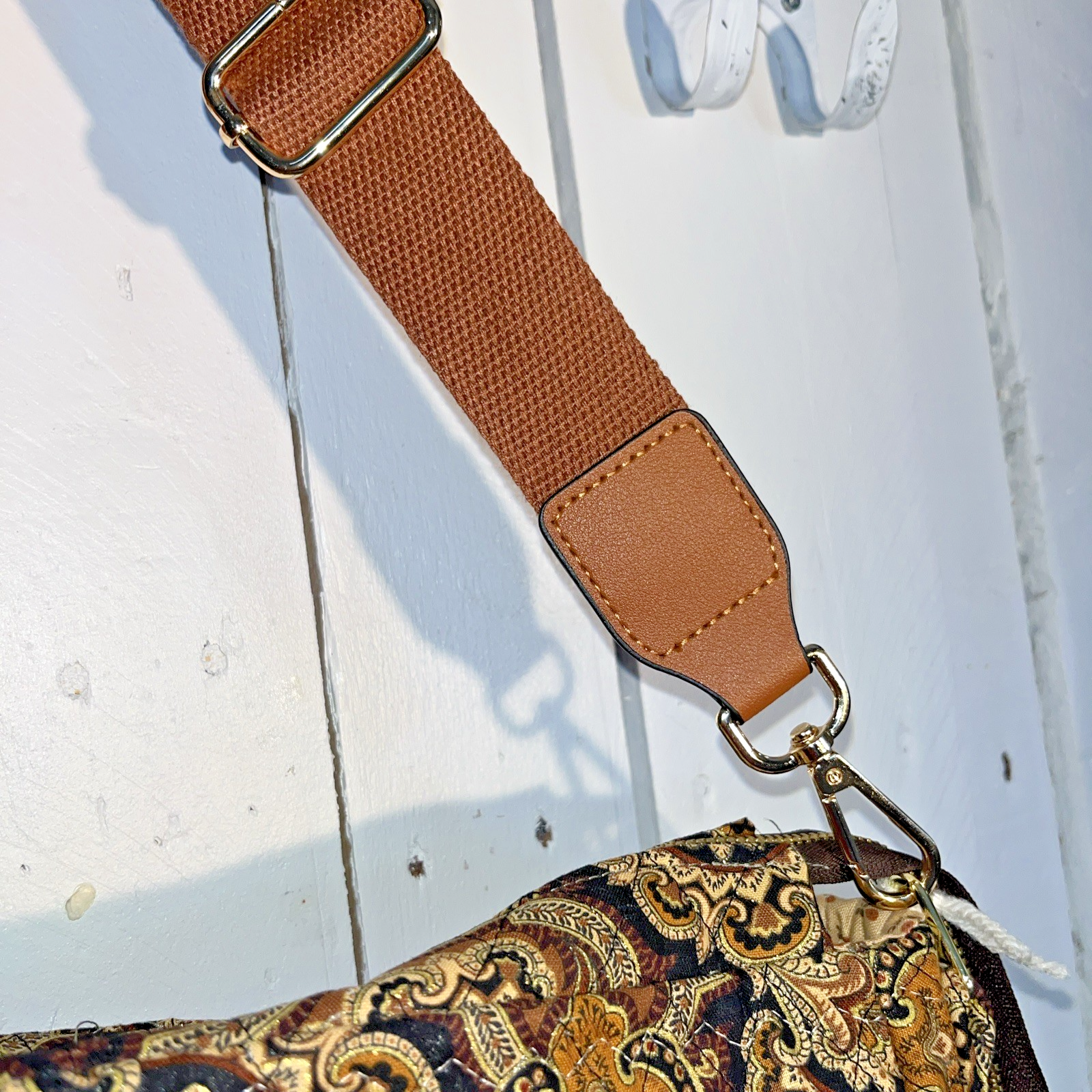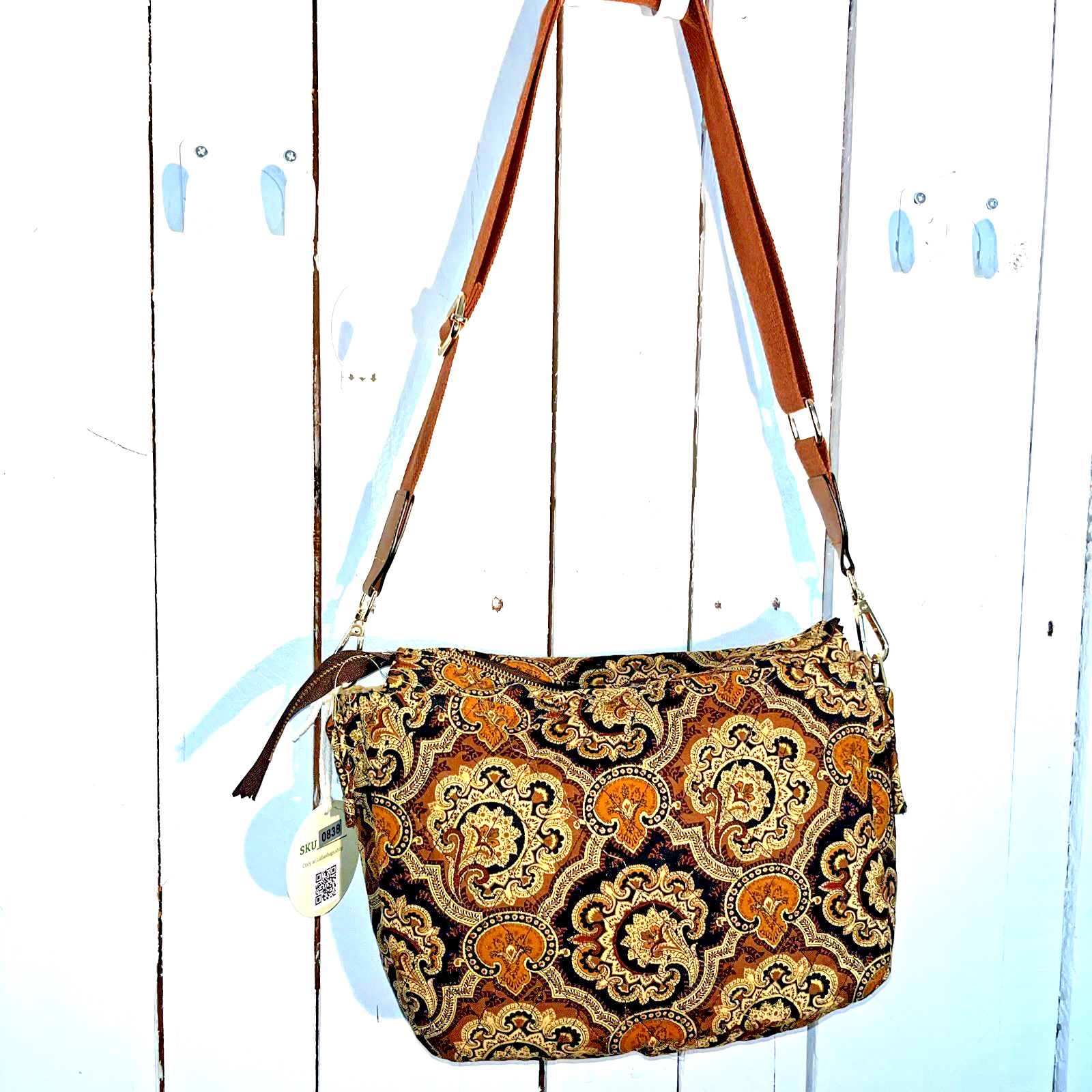 Lidia’s Exclusive Quilted Paisley Crossbody — Boutique Luxury in Warm Gold & Brown