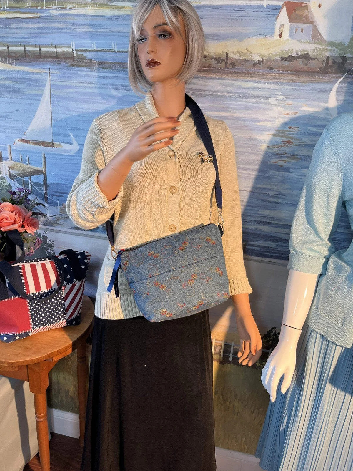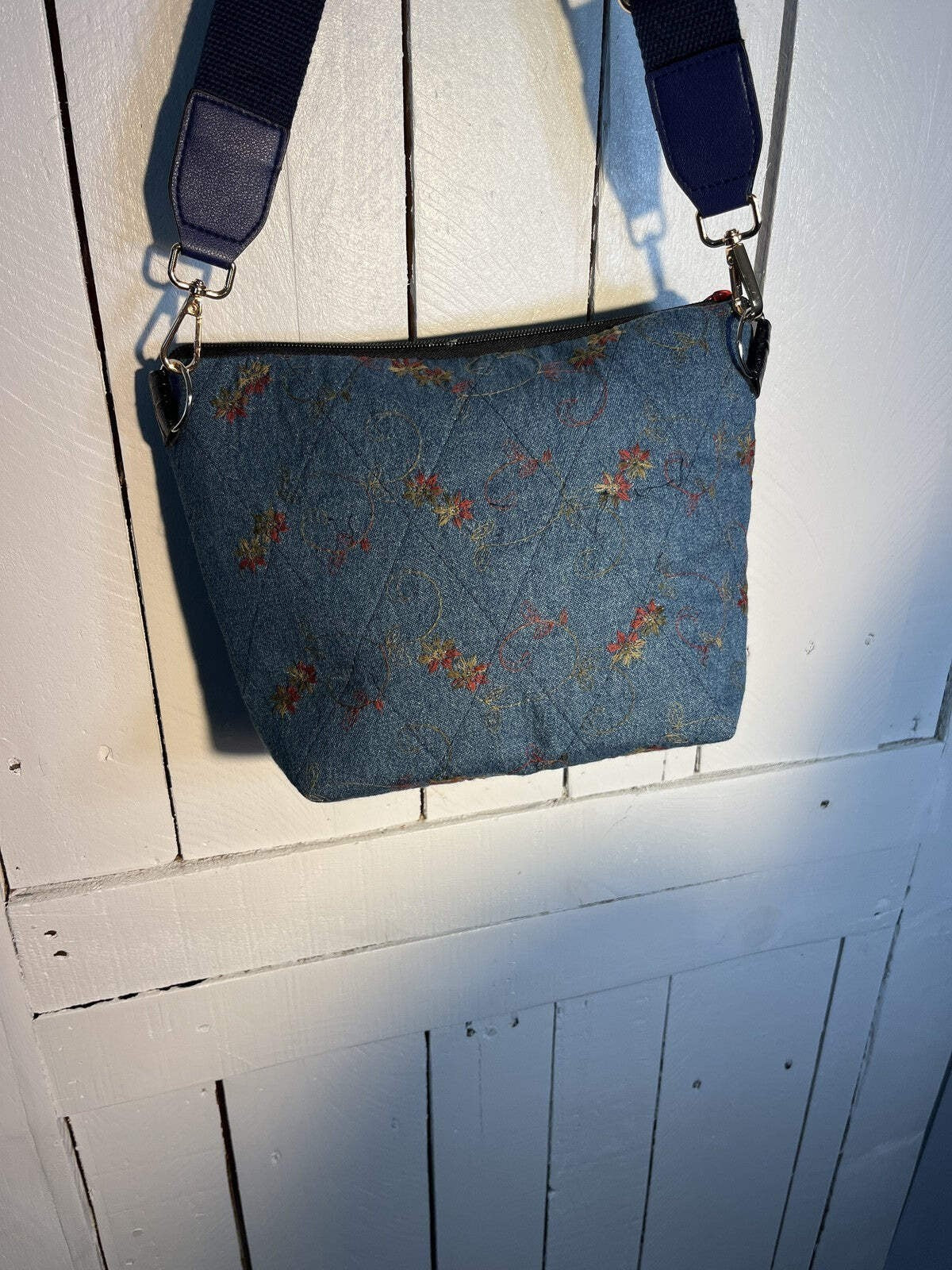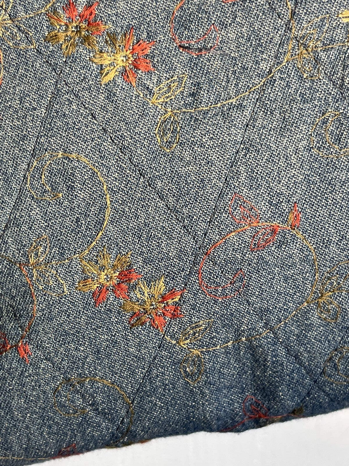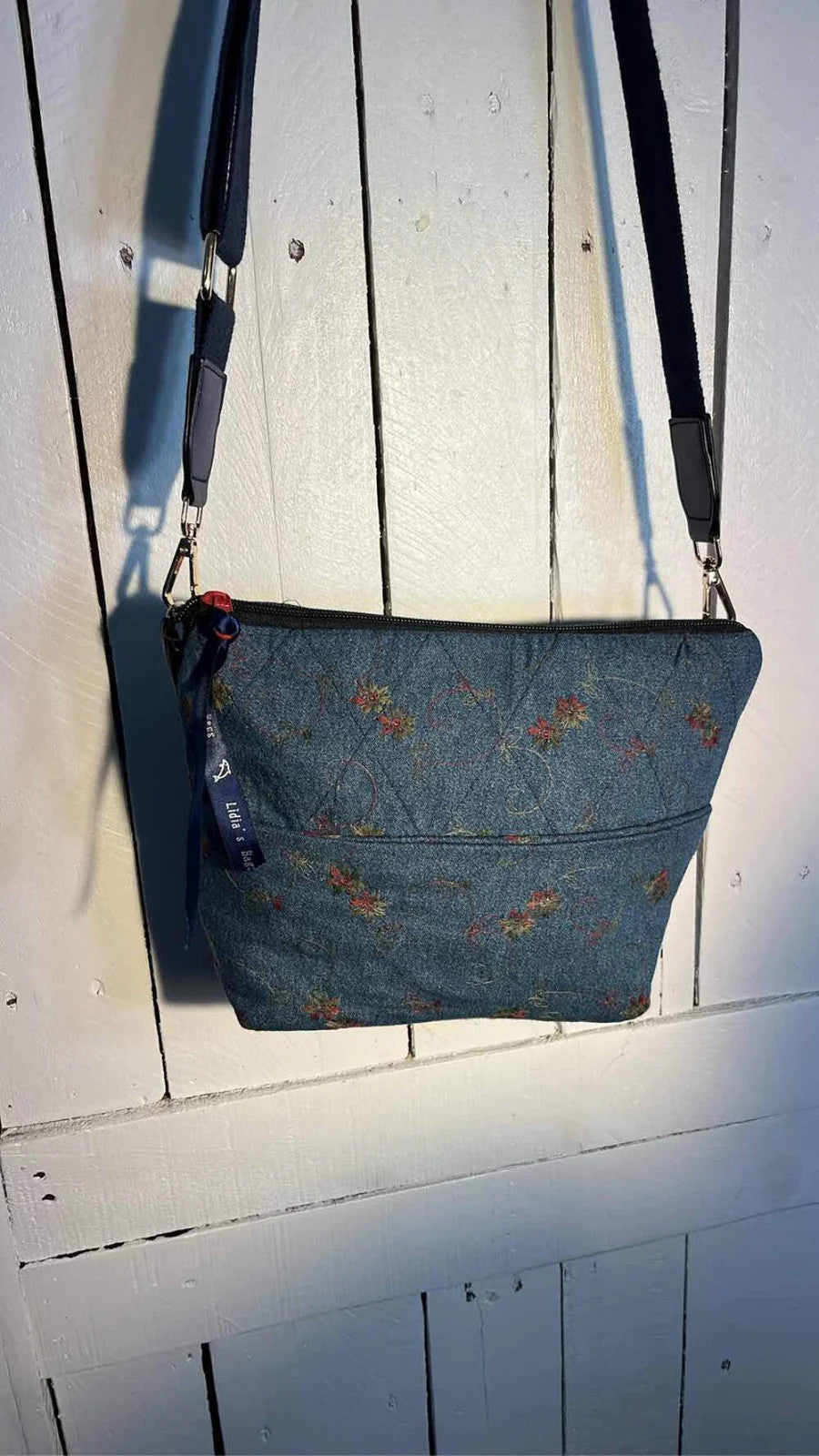 Lidia's Bags Quilted Denim Floral Embroidered Crossbody Bag Blue 0048