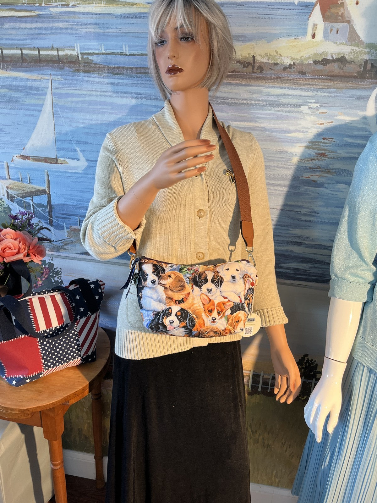 Quilted Dog Puppy Print Shoulder Bag Tote Purse Crossbody Adjustable Strap. 0059