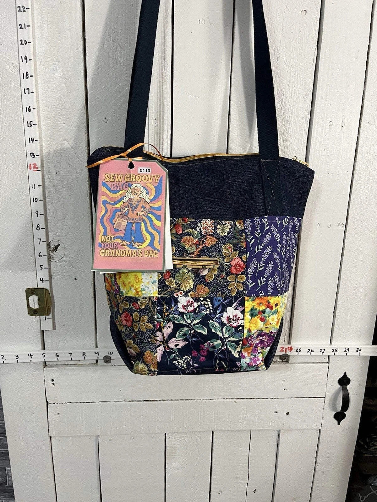 Sew Groovy Bag โ Hand-Quilted Patchwork Tote / Shoulder Bag