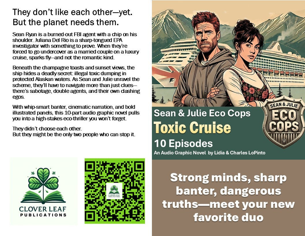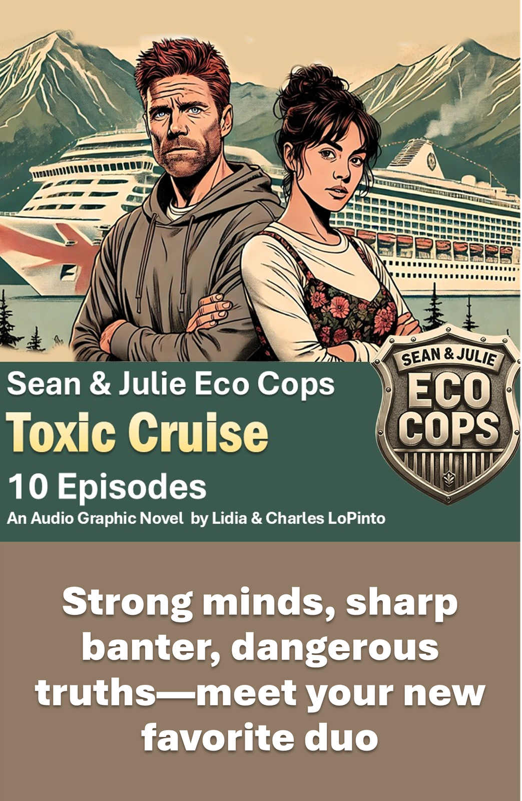 Sean & Julie: Eco Cops – The Toxic Cruise is a thrilling 10-part illustrated audio series that blends voice-acted narration, cinematic music, and bold graphic novel art to bring this environmental crime drama to life.