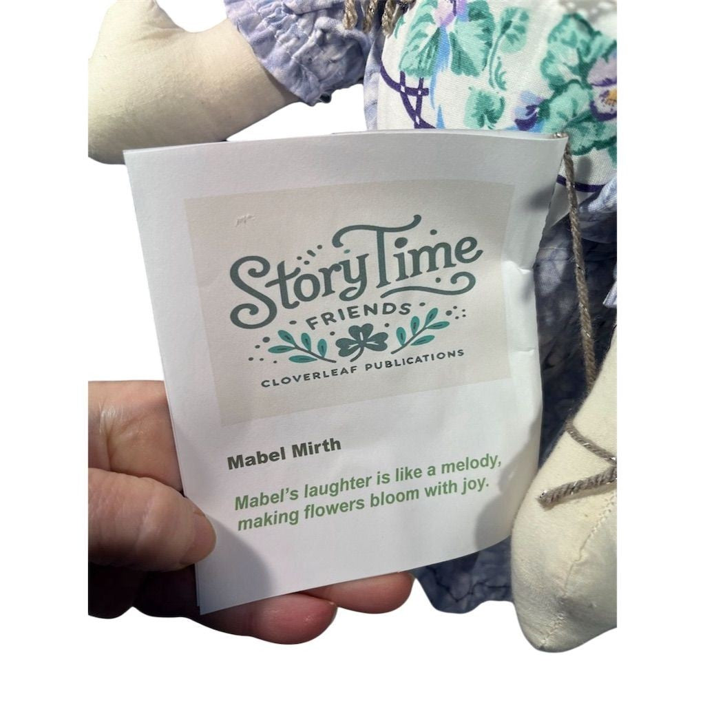 Every doll comes with an official Storytime Friends card printed on recycled paper and marked with a unique serial number. Mabel Mirth’s card reads:
