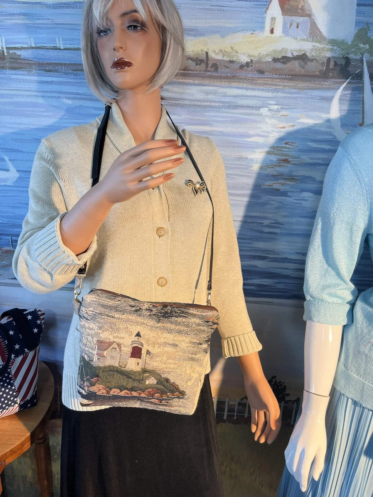 Vintage Lighthouse Tapestry Purse Crossbody Bag Nautical Seaside Beach 0051
