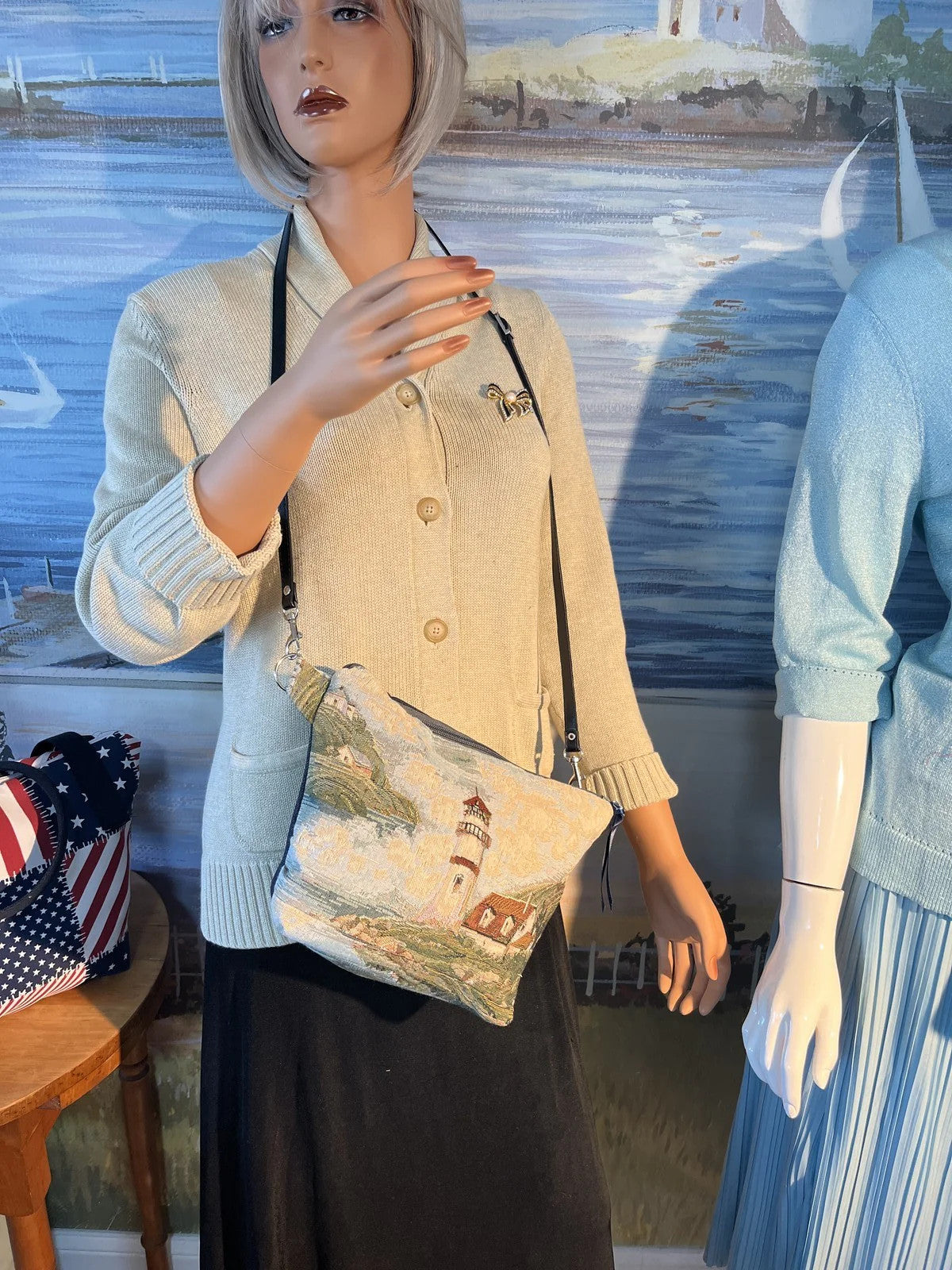 VTG Tapestry Lighthouse Shoulder Bag Purse Coastal Nautical Scene 0046